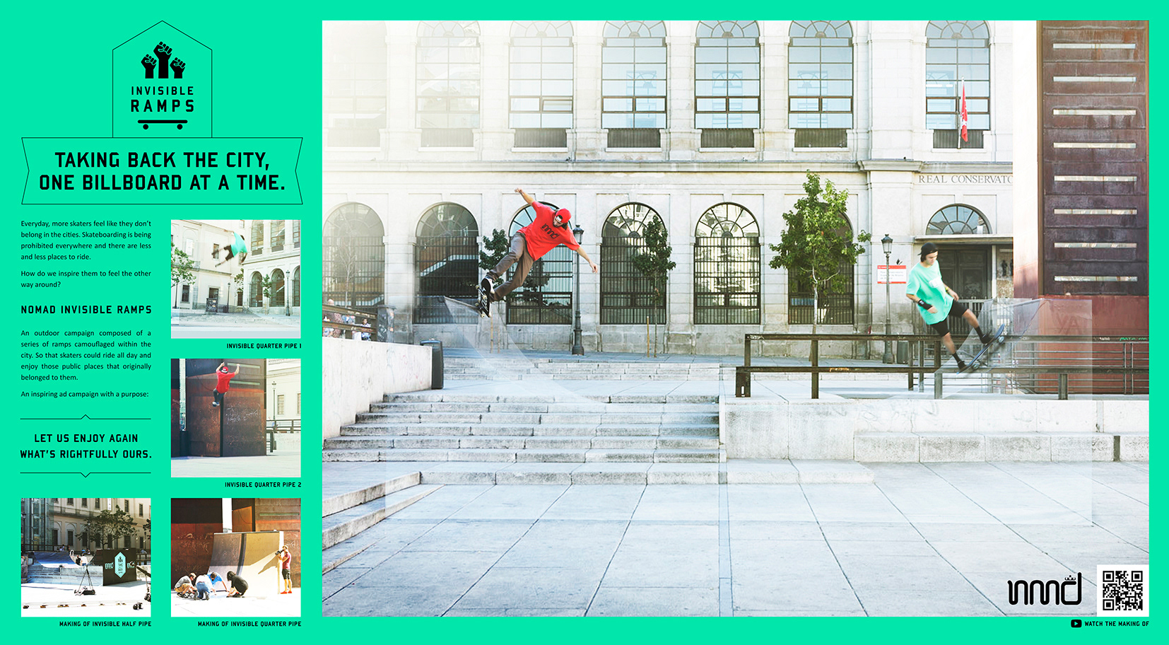 Nomad created a series of ramps camouflaged within the city, launching an outdoor campaign where billboards were turned into a powerful statement: Take your city back.